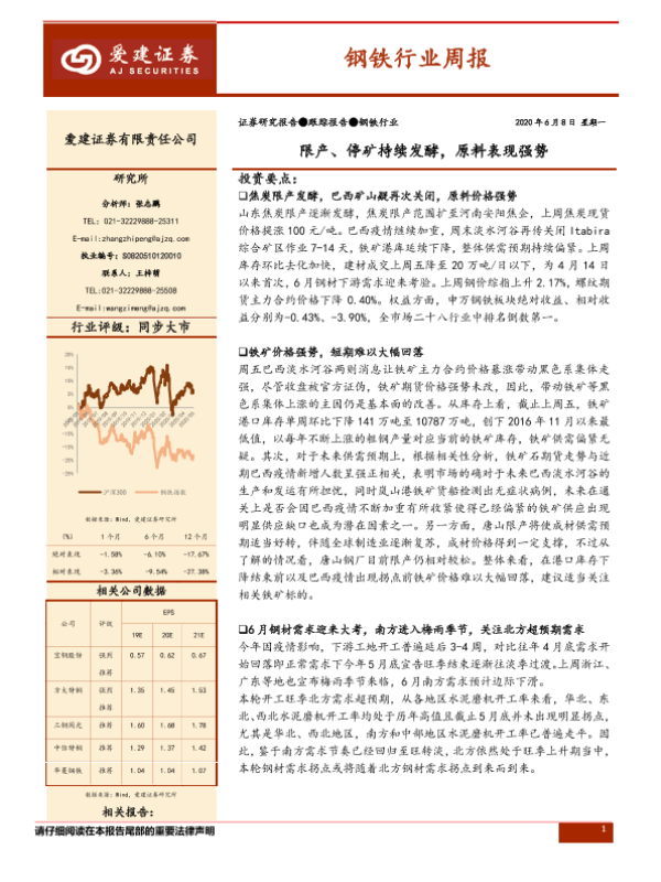【爱建证券】【20200608】20200608-爱建证券-钢铁行业周报:限产、停矿持续发酵,原料表现强势-24页
