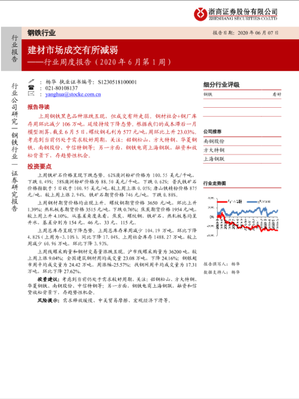 【浙商证券】【20200607】2020年6月第1周钢铁行业周度报告:建材市场成交有所减弱-14页