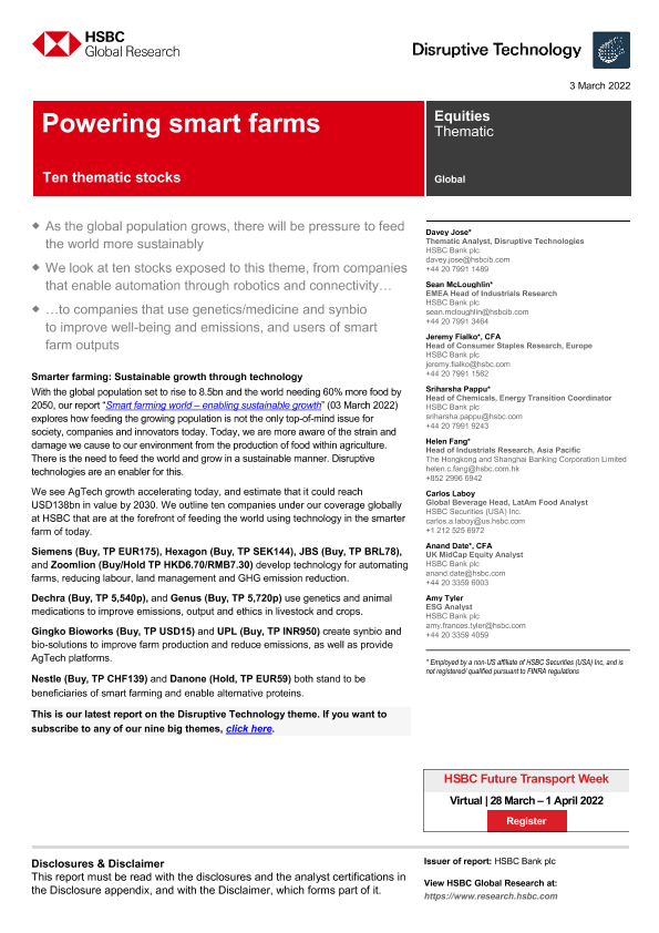 【HSBC Bank plc】【20220303】HSBC-全球颠覆性科技行业-推动智能农场:十支主题股票-40页