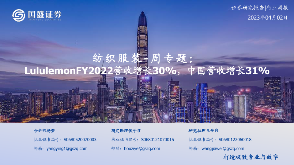 【国盛证券】【20230402】20230402-国盛证券-纺织服装-周专题:LululemonFY2022营收增长30%,中国营收增长31%-16页