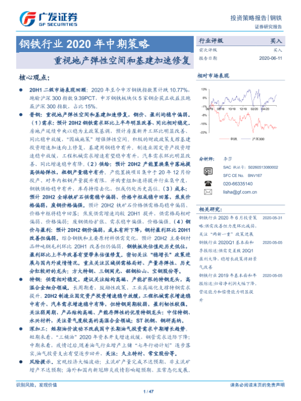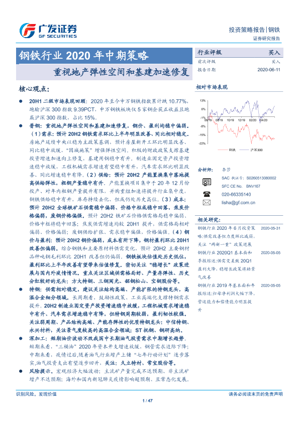 【广发证券】【20200611】钢铁行业2020年中期策略:重视地产弹性空间和基建加速修复-47页
