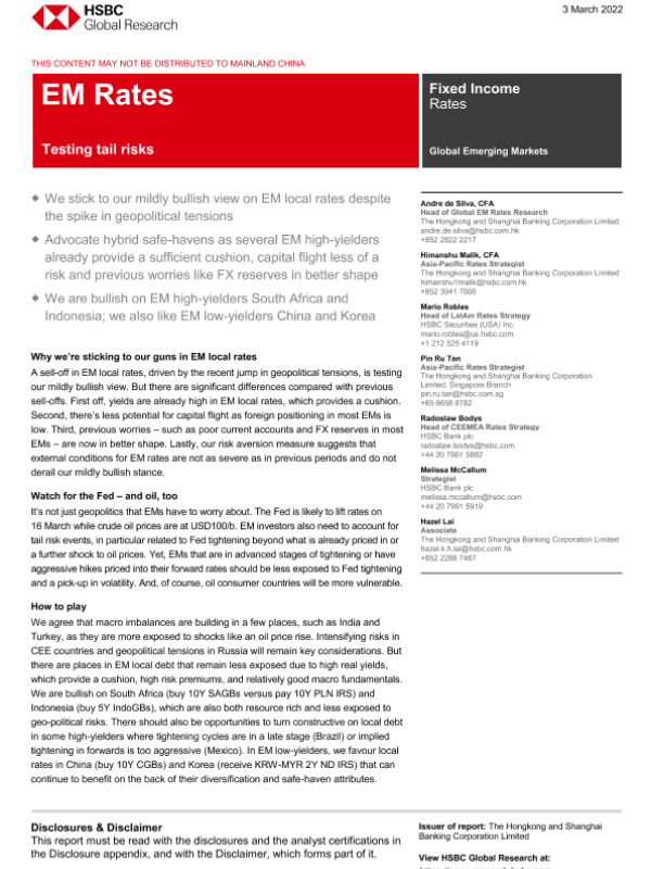 【The Hongkong and Shanghai Banking Corporation Limited】【20220303】HSBC-新兴市场投资策略-固定收益利率:测试尾部风险-42页