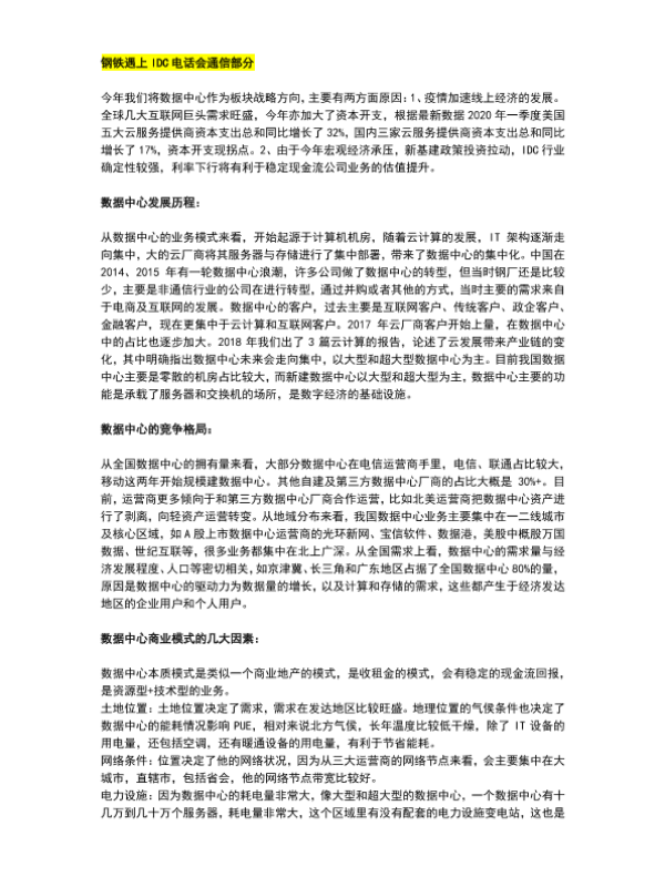 【中泰证券】【20200619】钢铁遇上IDC电话会通信部分-4页