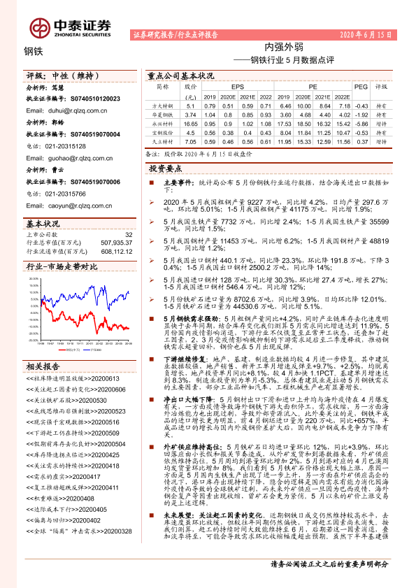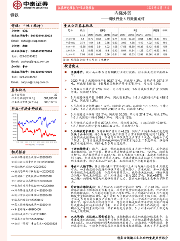 【中泰证券】【20200615】钢铁行业5月数据点评:内强外弱-5页