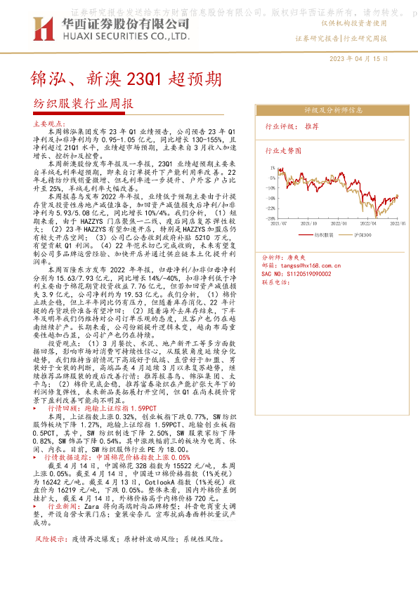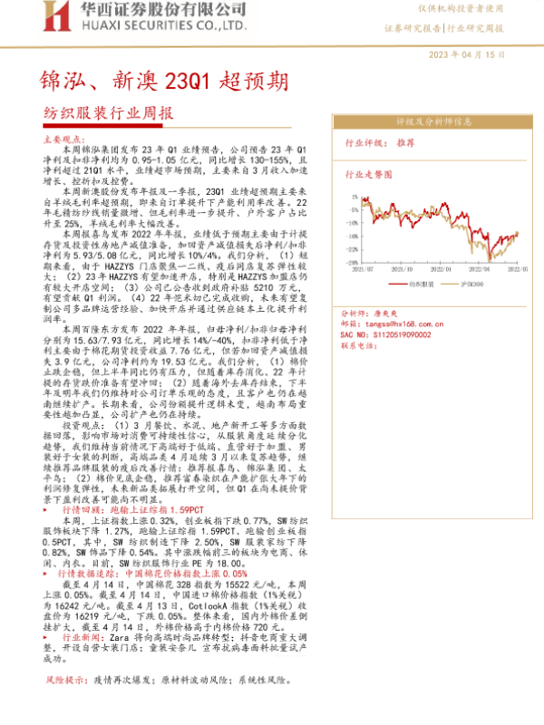 【华西证券】【20230415】20230415-华西证券-纺织服装行业周报:锦泓、新澳23Q1超预期-16页