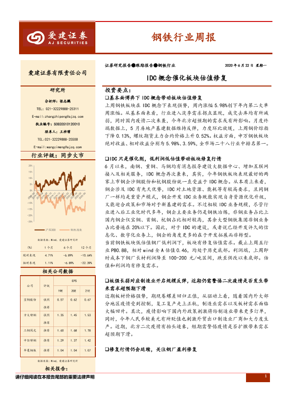 【爱建证券】【20200622】20200622-爱建证券-钢铁行业周报:IDC概念催化板块估值修复-24页