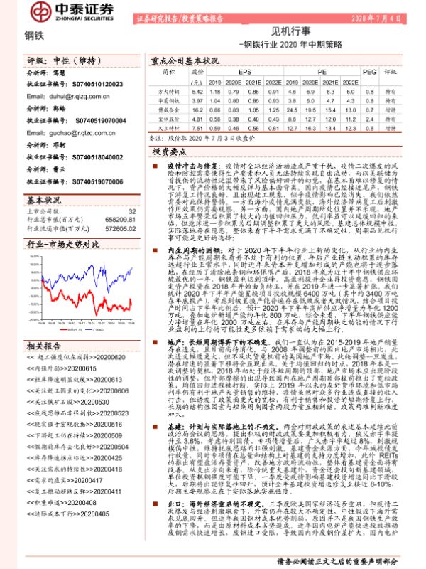 【中泰证券】【20200704】钢铁行业2020年中期策略:见机行事-25页