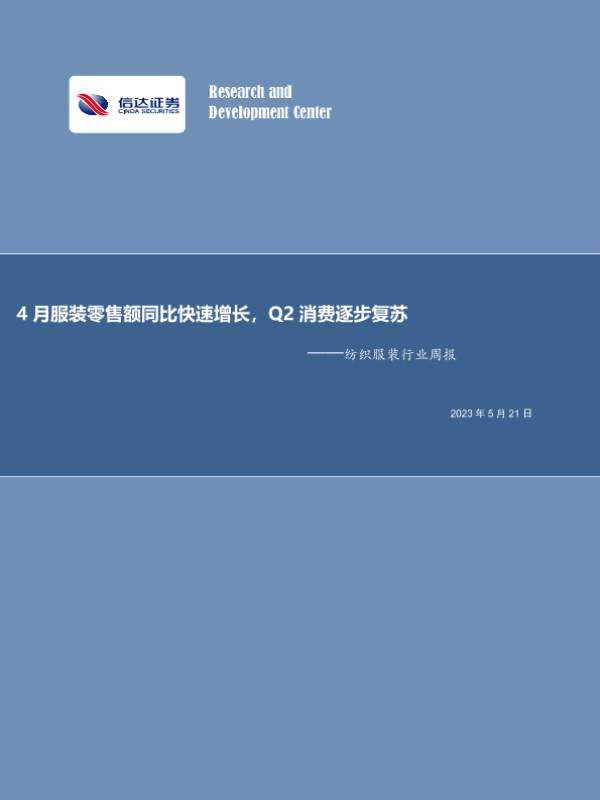 【信达证券】【20230521】20230521-信达证券-纺织服装行业周报:4月服装零售额同比快速增长,Q2消费逐步复苏-18页
