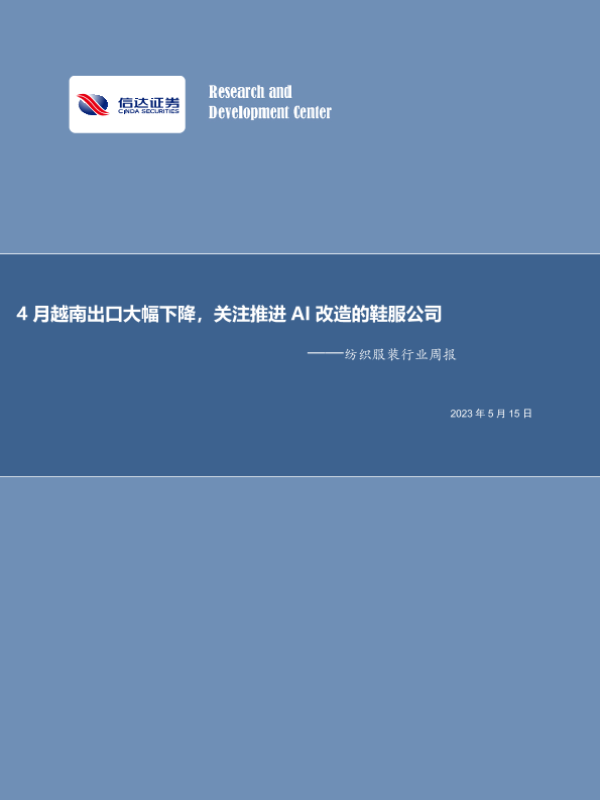 【信达证券】【20230515】4月越南出口大幅下降,关注推进AI改造的鞋服公司-18页