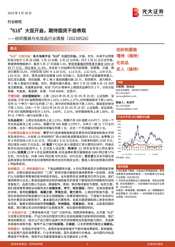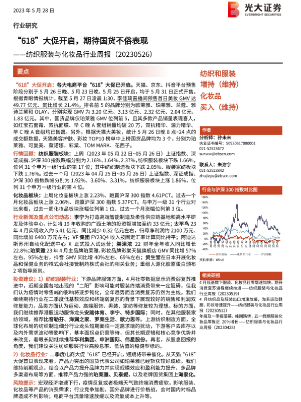 【光大证券】【20230528】20230528-光大证券-纺织服装与化妆品行业周报:“618”大促开启,期待国货不俗表现-11页