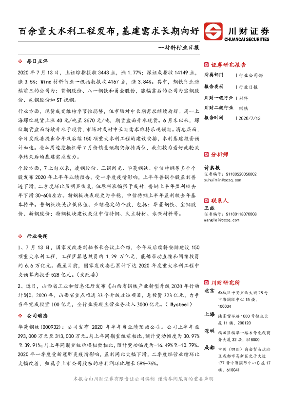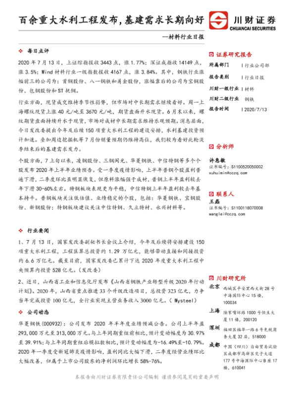 【川财证券】【20200713】材料行业日报:百余重大水利工程发布,基建需求长期向好-3页