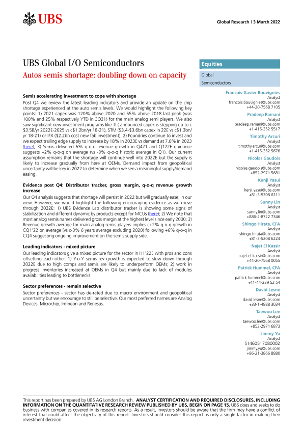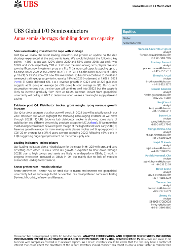 【瑞银】【20220303】全球半导体行业-汽车行业半导体短缺:产能加倍-22页
