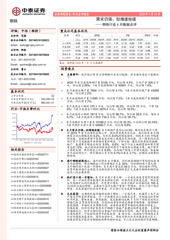 【中泰证券】【20200716】20200716-中泰证券-钢铁行业6月数据点评:需求仍强、但增速放缓-5页