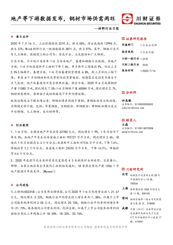 【川财证券】【20200716】材料行业日报:地产等下游数据发布,钢材市场供需两旺-3页