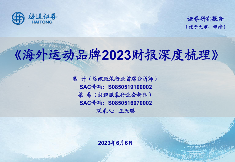 【海通证券】【20230606】海外运动品牌2023财报深度梳理-22页