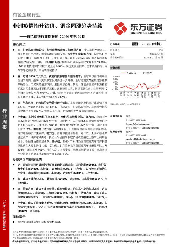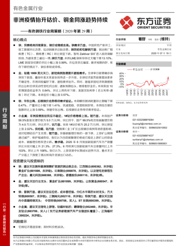 【东方证券】【20200719】2020年第29周有色钢铁行业周策略:非洲疫情抬升钴价、铜金同涨趋势持续-27页