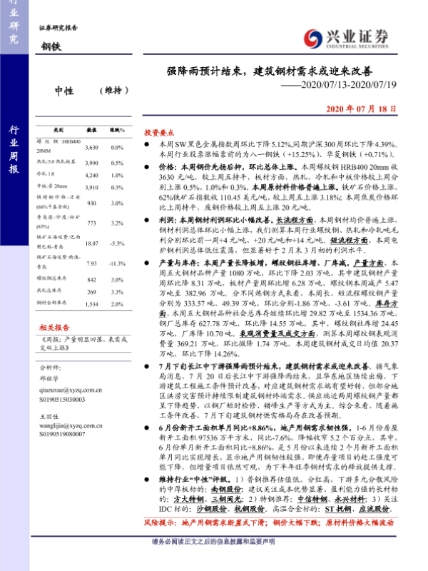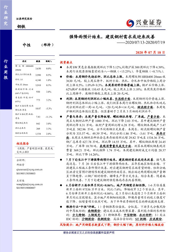 【兴业证券】【20200718】强降雨预计结束,建筑钢材需求或迎来改善-17页