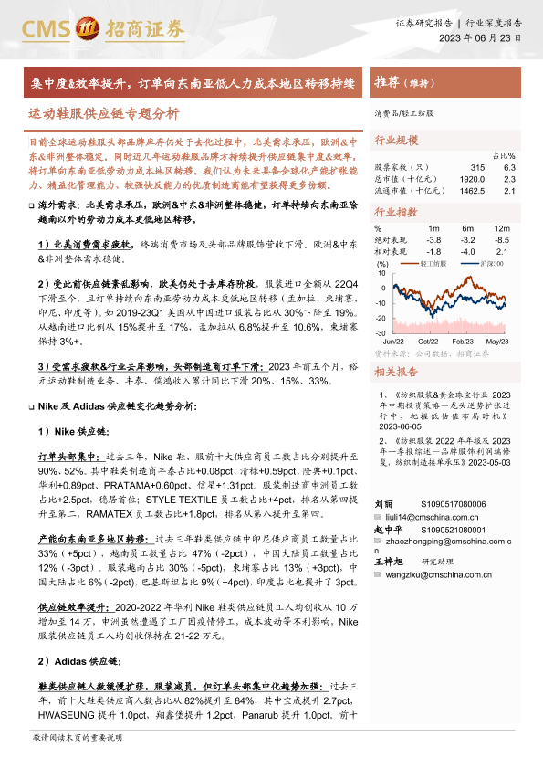 【海通证券】【20230623】20230623-招商证券-运动鞋服供应链专题分析:集中度&效率提升,订单向东南亚低人力成本地区转移持续-20页