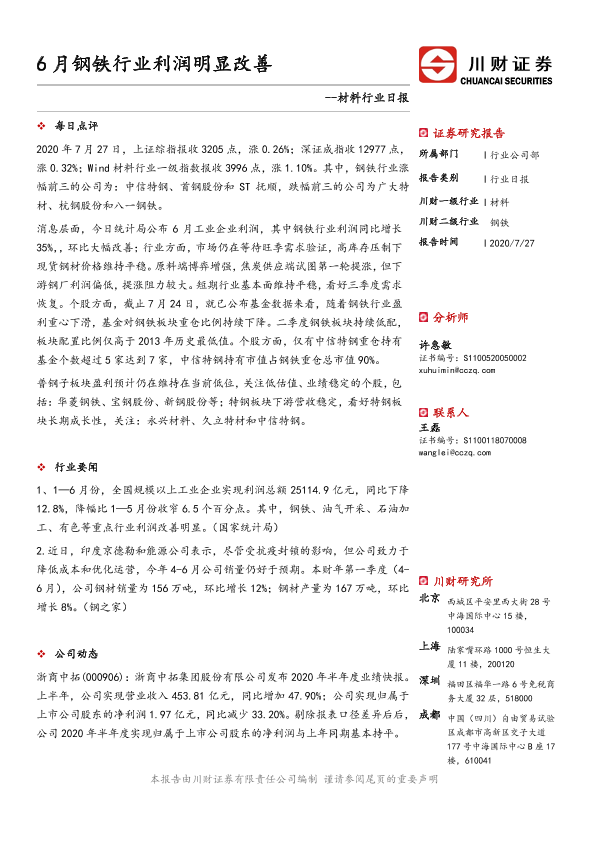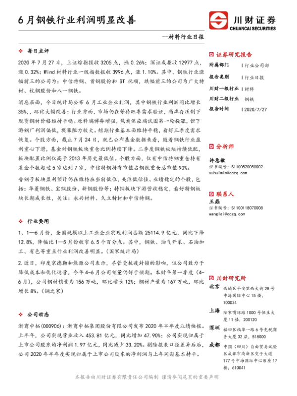 【川财证券】【20200727】6月钢铁行业利润明显改善-3页