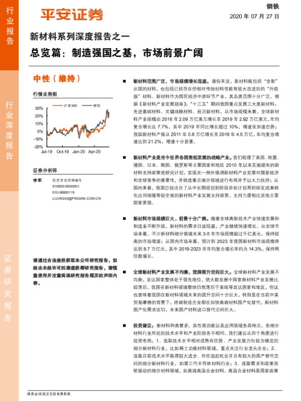 【平安证券】【20200727】20200727-平安证券-新材料系列深度报告之一:总览篇:制造强国之基,市场前景广阔-17页