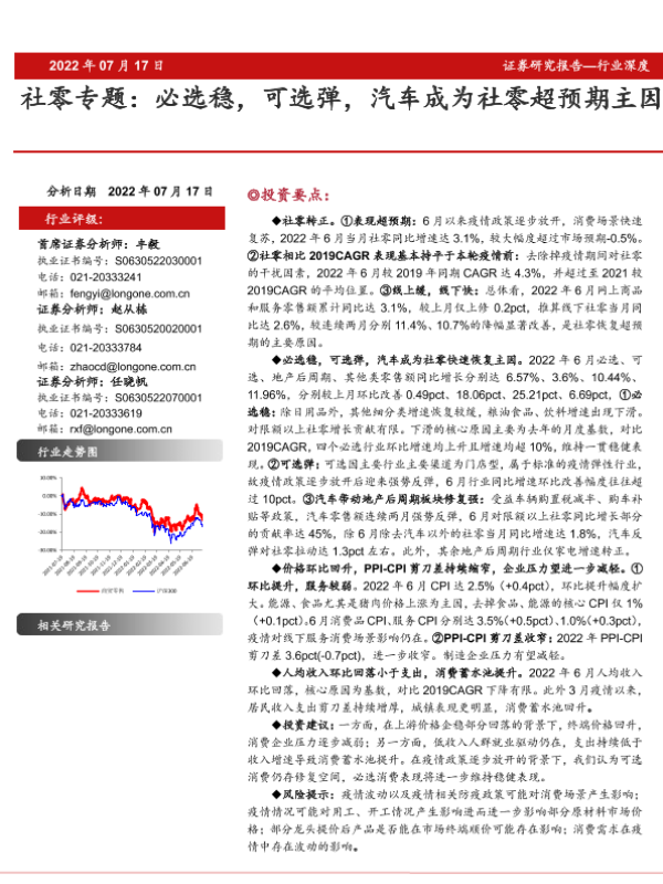 【东海证券】【20220717】社零行业专题:必选稳,可选弹,汽车成为社零超预期主因-21页