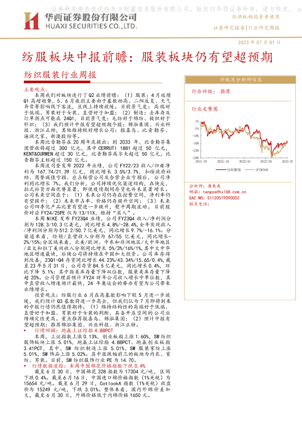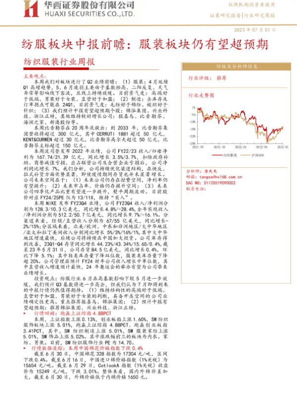 【华西证券】【20230701】纺服板块中报前瞻:服装板块仍有望超预期-20页