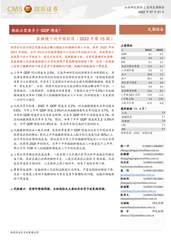 【海通证券】【20220721】显微镜下的中国经济(2022年第15期):稳就业需要多少GDP增速?-26页
