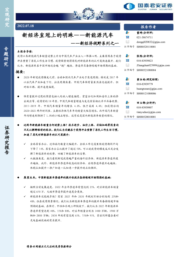 【国泰君安证券】【20220718】新经济视野系列之一:新经济皇冠上的明珠,新能源汽车-24页