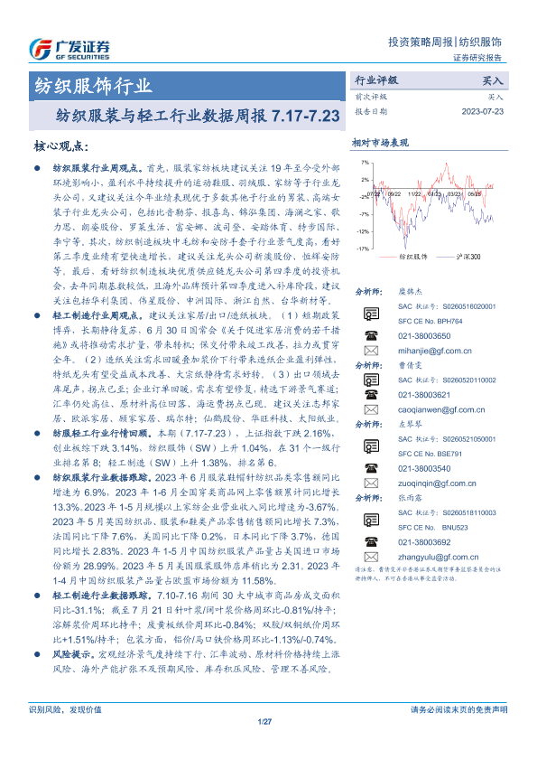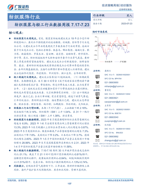 【广发证券】【20230723】纺织服装与轻工行业数据周报-27页