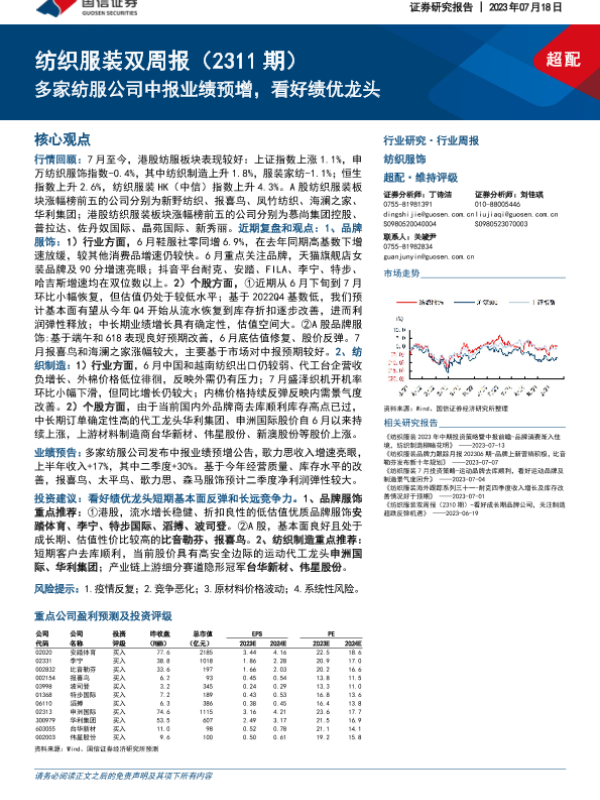 【国信证券】【20230718】20230718-国信证券-纺织服装双周报(2311期):多家纺服公司中报业绩预增,看好绩优龙头-14页