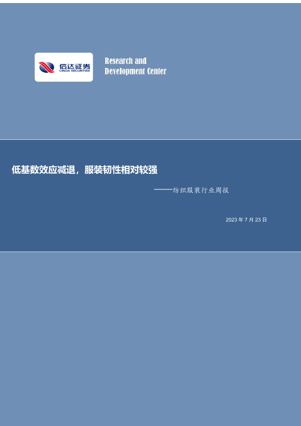 【信达证券】【20230723】20230723-信达证券-纺织服装行业周报:低基数效应减退,服装韧性相对较强-17页