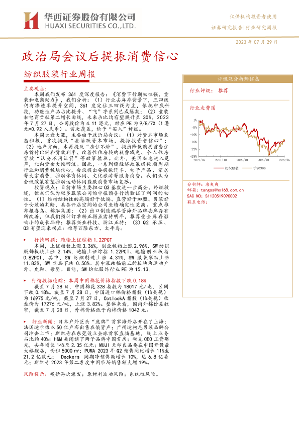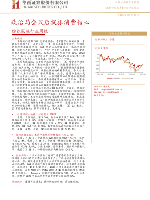 【华西证券】【20230729】20230729-华西证券-纺织服装行业周报:政治局会议后提振消费信心-25页