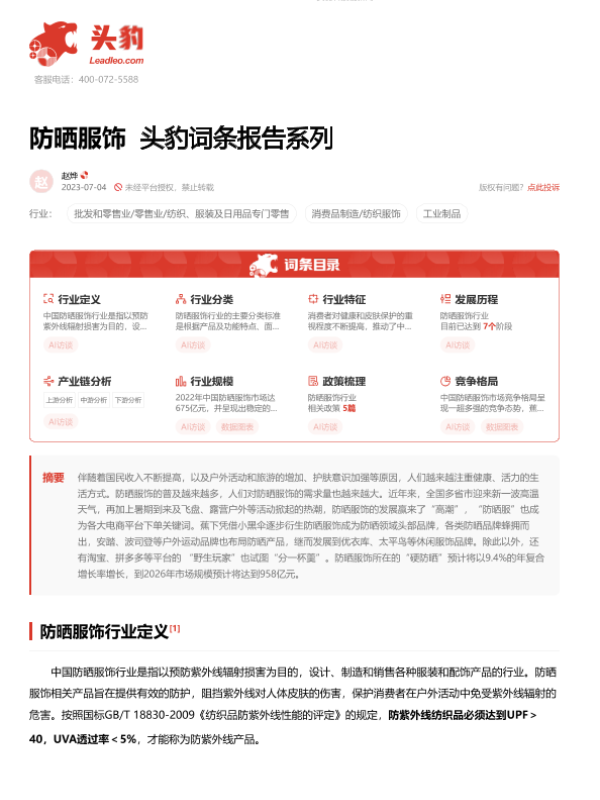 【头豹研究院】【20230721】防晒服饰 头豹词条报告系列-16页