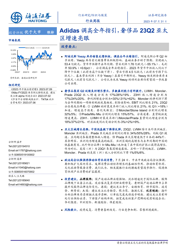 【海通证券】【20230731】20230731-海通证券-纺织与服装行业周报:Adidas调高全年指引,奢侈品23Q2亚太区增速亮眼-11页