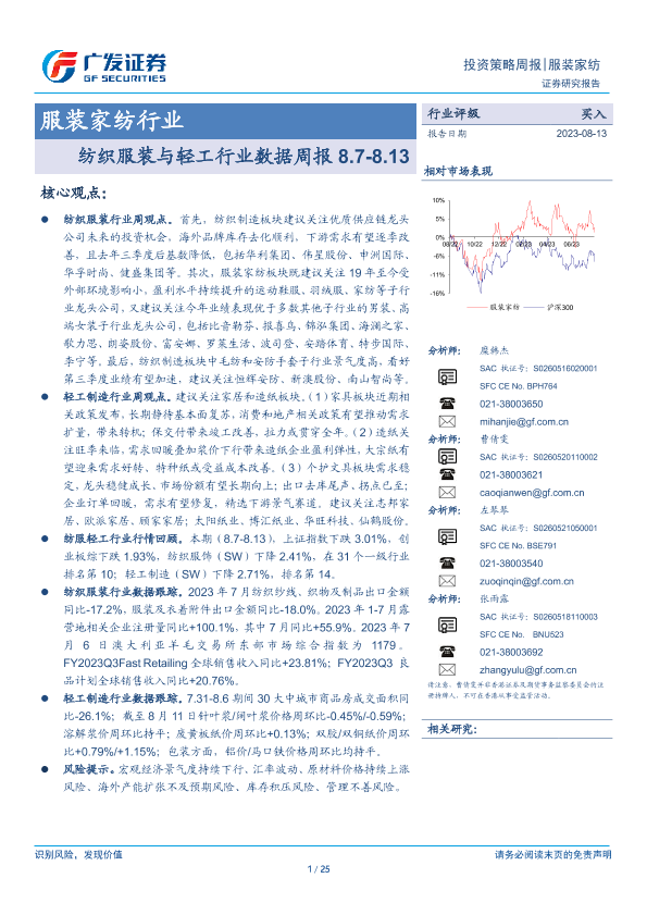 【广发证券】【20230813】20230813-广发证券-纺织服装与轻工行业数据周报-25页