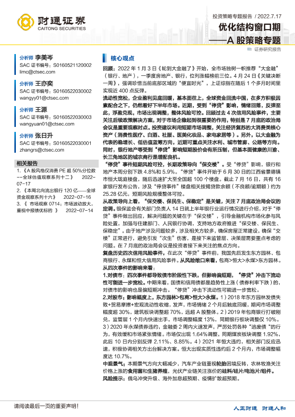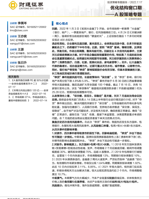 【财通证券】【20220717】A股策略专题:优化结构窗口期-20页
