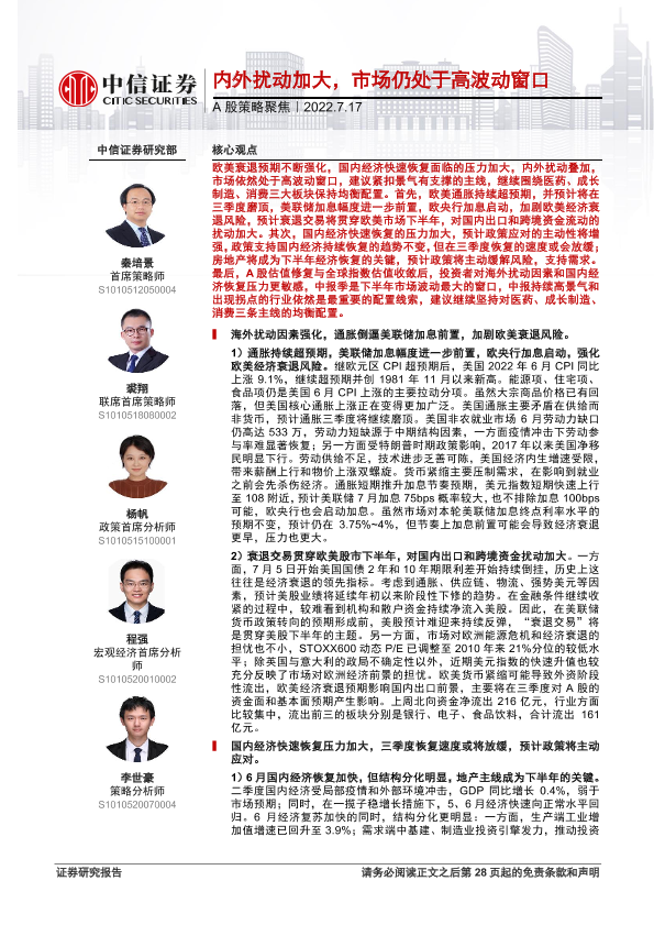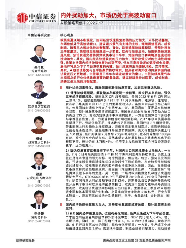 【中信证券】【20220717】A股策略聚焦:内外扰动加大,市场仍处于高波动窗口-29页