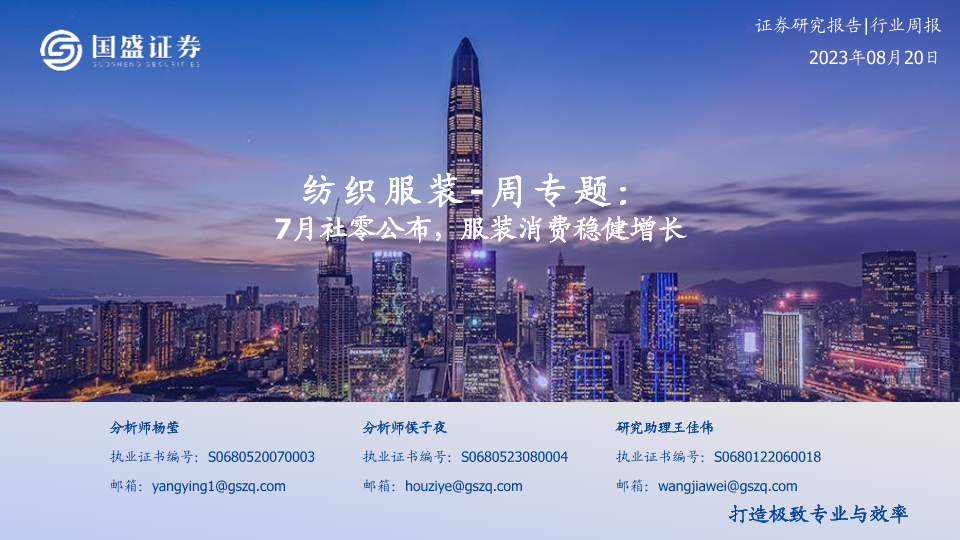 【国盛证券】【20230820】20230820-国盛证券-纺织服装-周专题:7月社零公布,服装消费稳健增长-18页