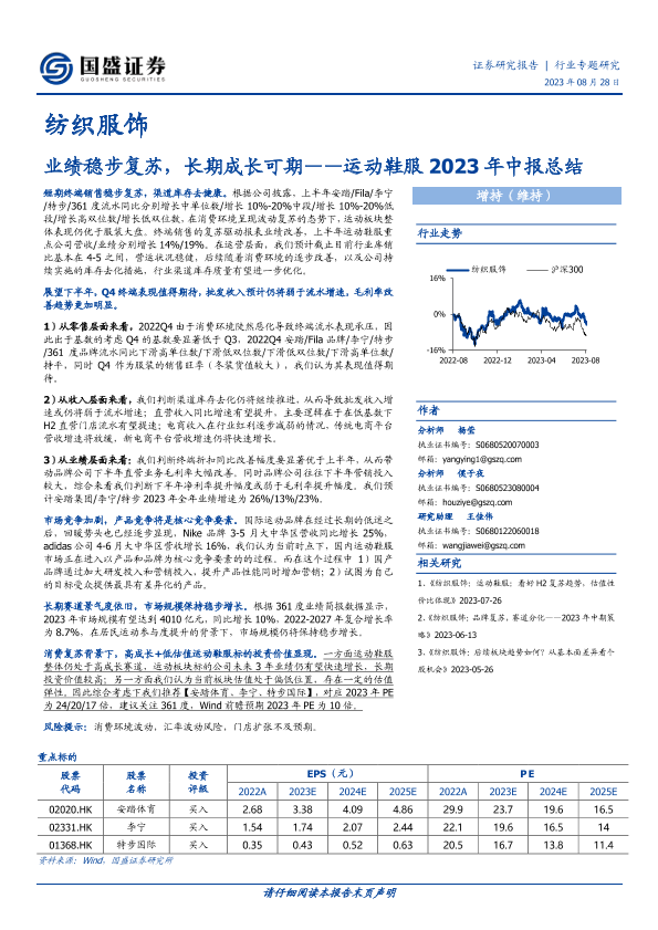 【国盛证券】【20230828】纺织服饰:运动鞋服2023年中报总结:业绩稳步复苏,长期成长可期-20页
