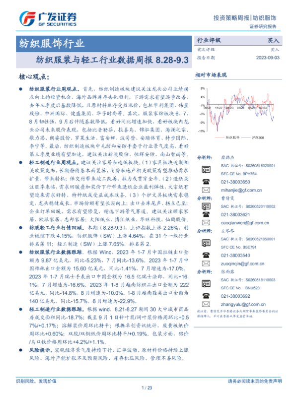 【广发证券】【20230903】纺织服装与轻工行业数据周报-23页
