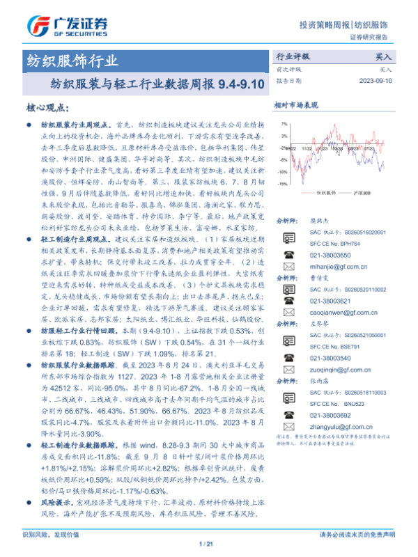 【广发证券】【20230910】纺织服装与轻工行业数据周报 9.4-9.10-21页