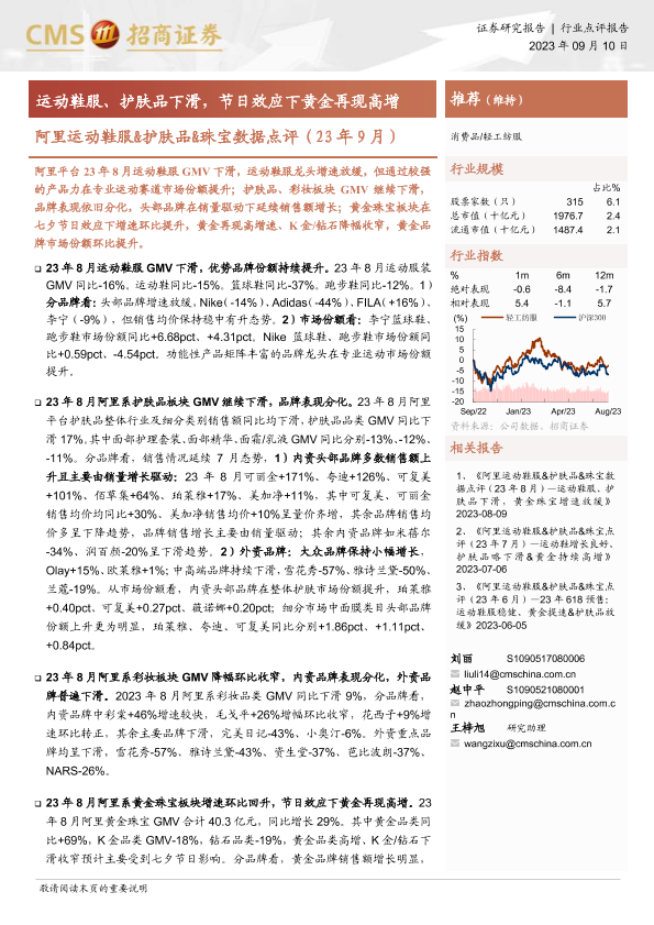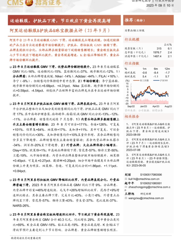 【海通证券】【20230910】阿里运动鞋服&护肤品&珠宝数据点评(23年9月):运动鞋服、护肤品下滑,节日效应下黄金再现高增-17页