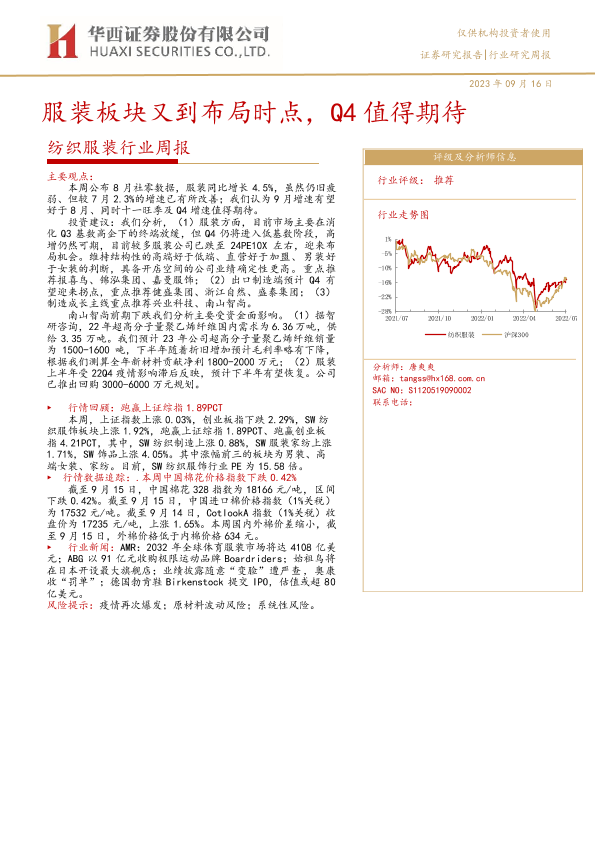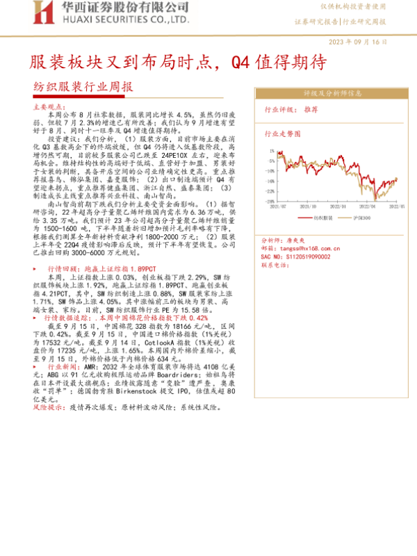 【华西证券】【20230916】20230916-华西证券-纺织服装行业周报:服装板块又到布局时点,Q4值得期待-28页