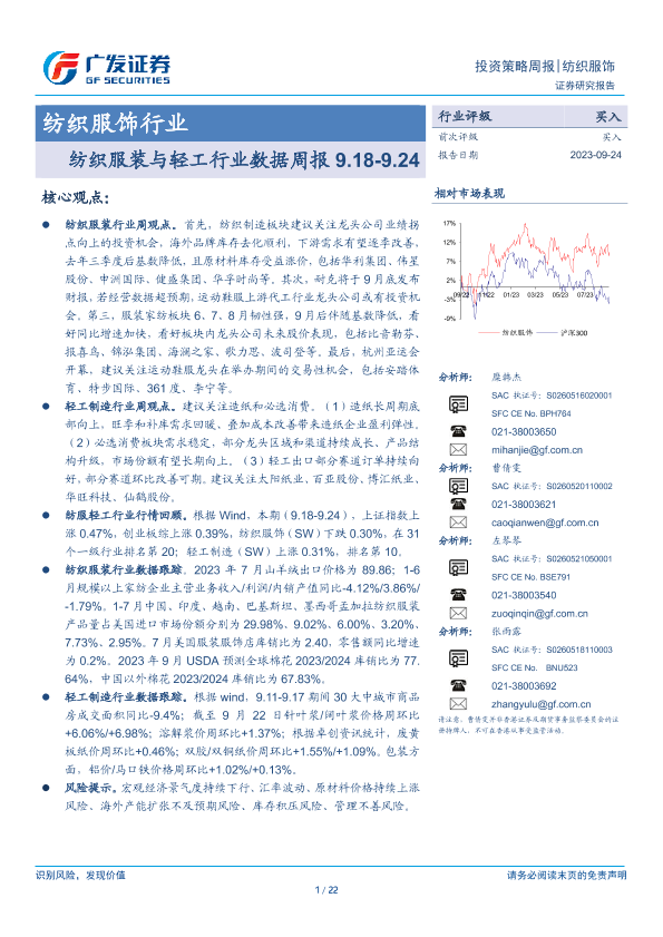 【广发证券】【20230924】20230924-广发证券-纺织服装与轻工行业数据周报-22页