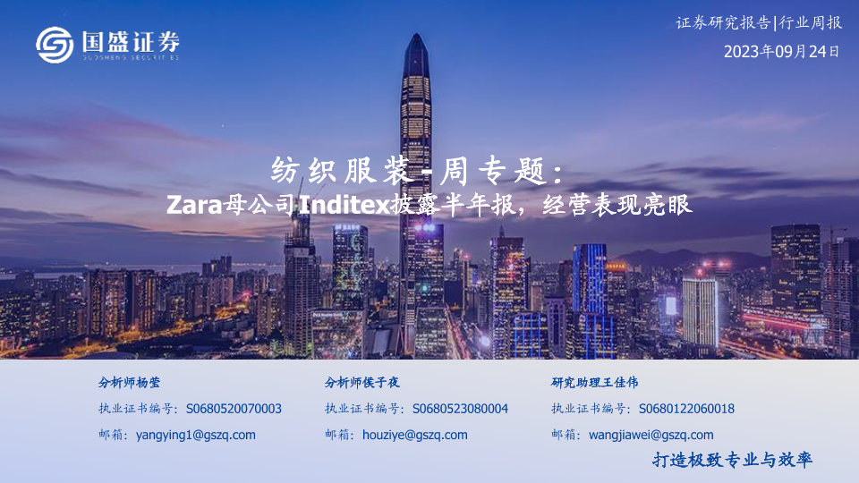 【国盛证券】【20230924】纺织服装-周专题:Zara母公司Inditex披露半年报,经营表现亮眼-14页