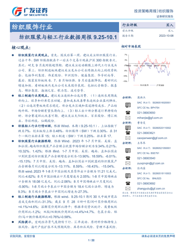 【广发证券】【20231008】纺织服装与轻工行业数据周报-22页