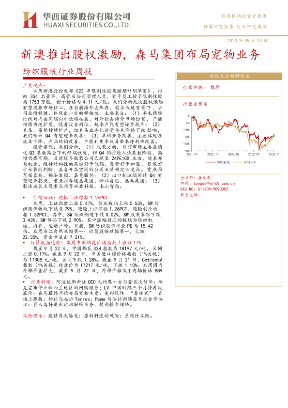 【华西证券】【20230923】20230923-华西证券-纺织服装行业周报:新澳推出股权激励,森马集团布局宠物业务-29页