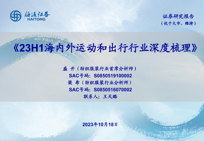 【海通证券】【20231018】23H1海内外运动和出行行业深度梳理-27页