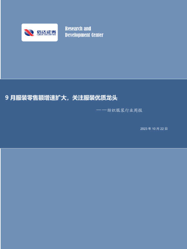 【信达证券】【20231022】20231022-信达证券-纺织服装行业周报:9月服装零售额增速扩大,关注服装优质龙头-14页