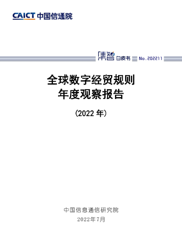 【中国信息通信研究院】【202207】全球数字经贸规则年度观察报告(2022年)-39页